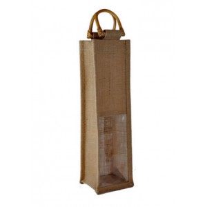 Bolsa de yute para 1 botella de vino, 1/2 ventana de PVC, recubrimiento interior. 100% biodegradable y reutilizable. Material natural de gran resistencia.