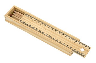 Set de 8 lápices en colores en caja de madera. Tapa con regla incluida.