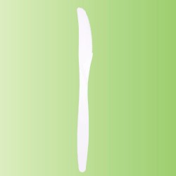Cuchillo mediano 6\" desechable ecológico fabricado con fécula o almidón de maiz y polímeros vegetales. Compostable y 100% biodegradable, se degrada en menos de 180 días. Puede ser congelado o usado en microondas.