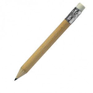 Lápiz grafito corto de madera barnizada, incluye goma de borrar y viene con punta lista.