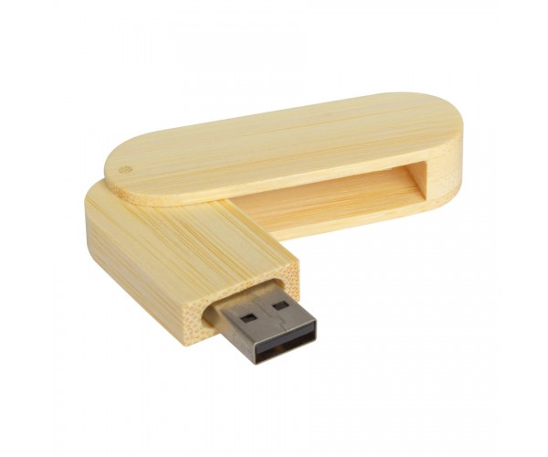 USB Pendrive 2.0 de 64GB de capacidad, 100% en madera de Bamboo, con carcasa giratoria. Presentación en elegante estuche de madera de Bamboo.